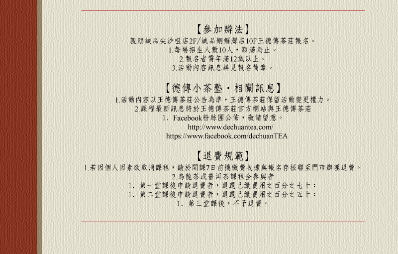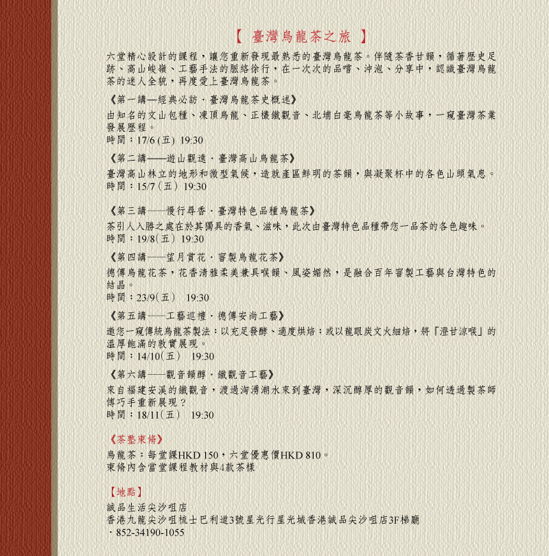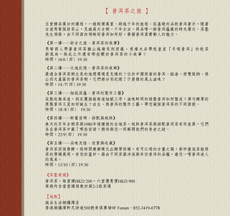 【德傳小茶塾–臺彎烏龍茶.普洱茶之旅】6/16起,香港開講