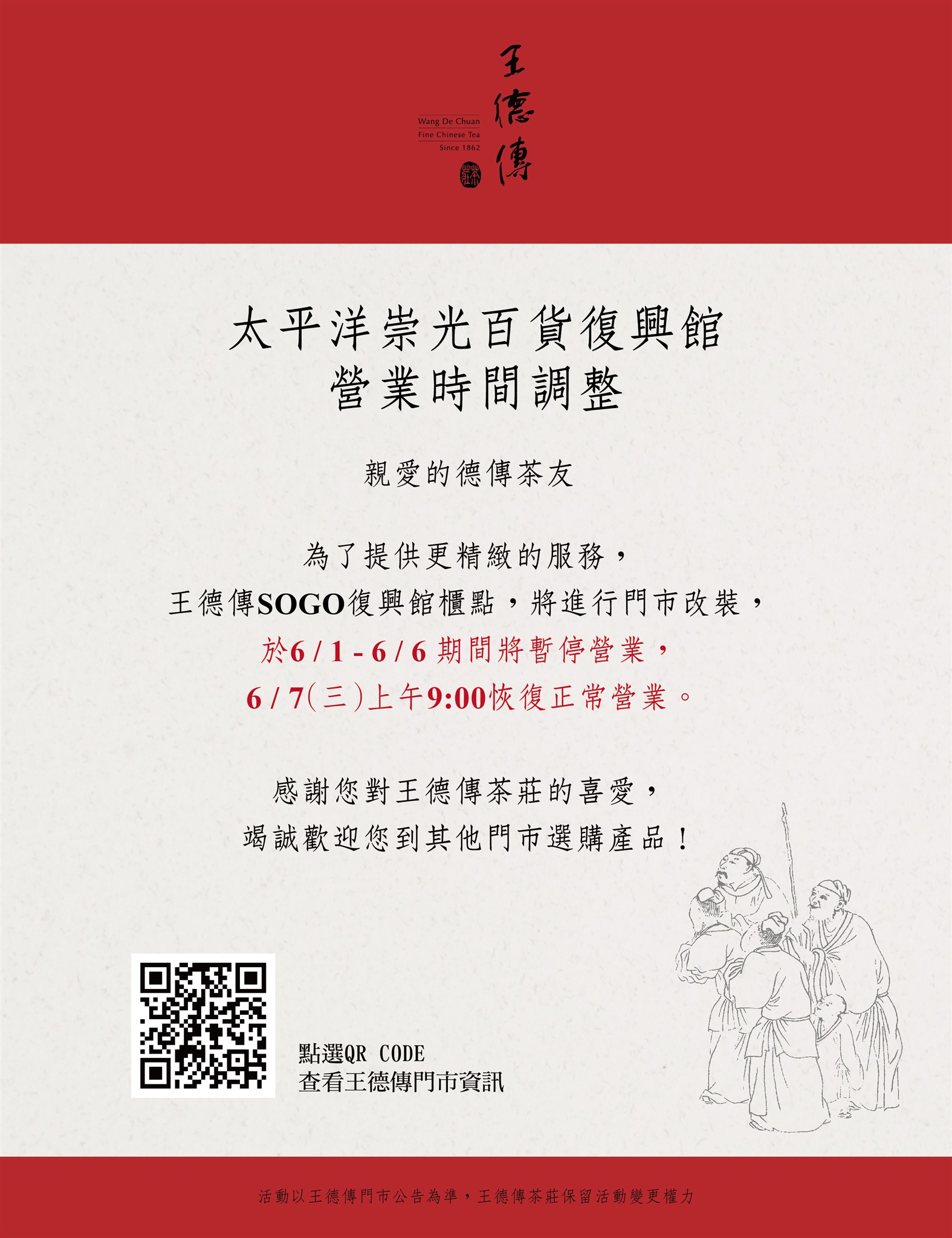 【太平洋崇光百貨復興館】營業時間調整公告!