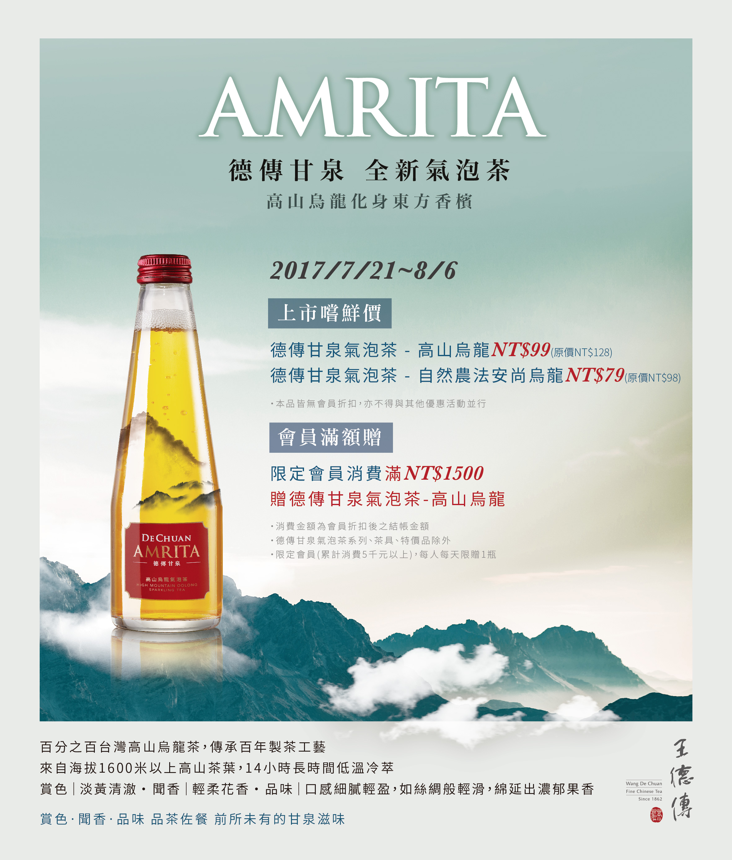 【新品上市】AMRITA 德傳甘泉氣泡茶,邀您開懷暢飲!