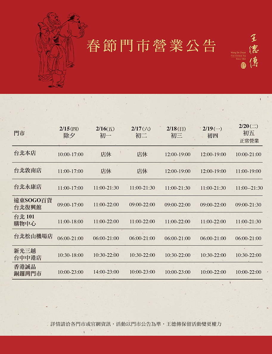 德傳《春節門市營業公告》